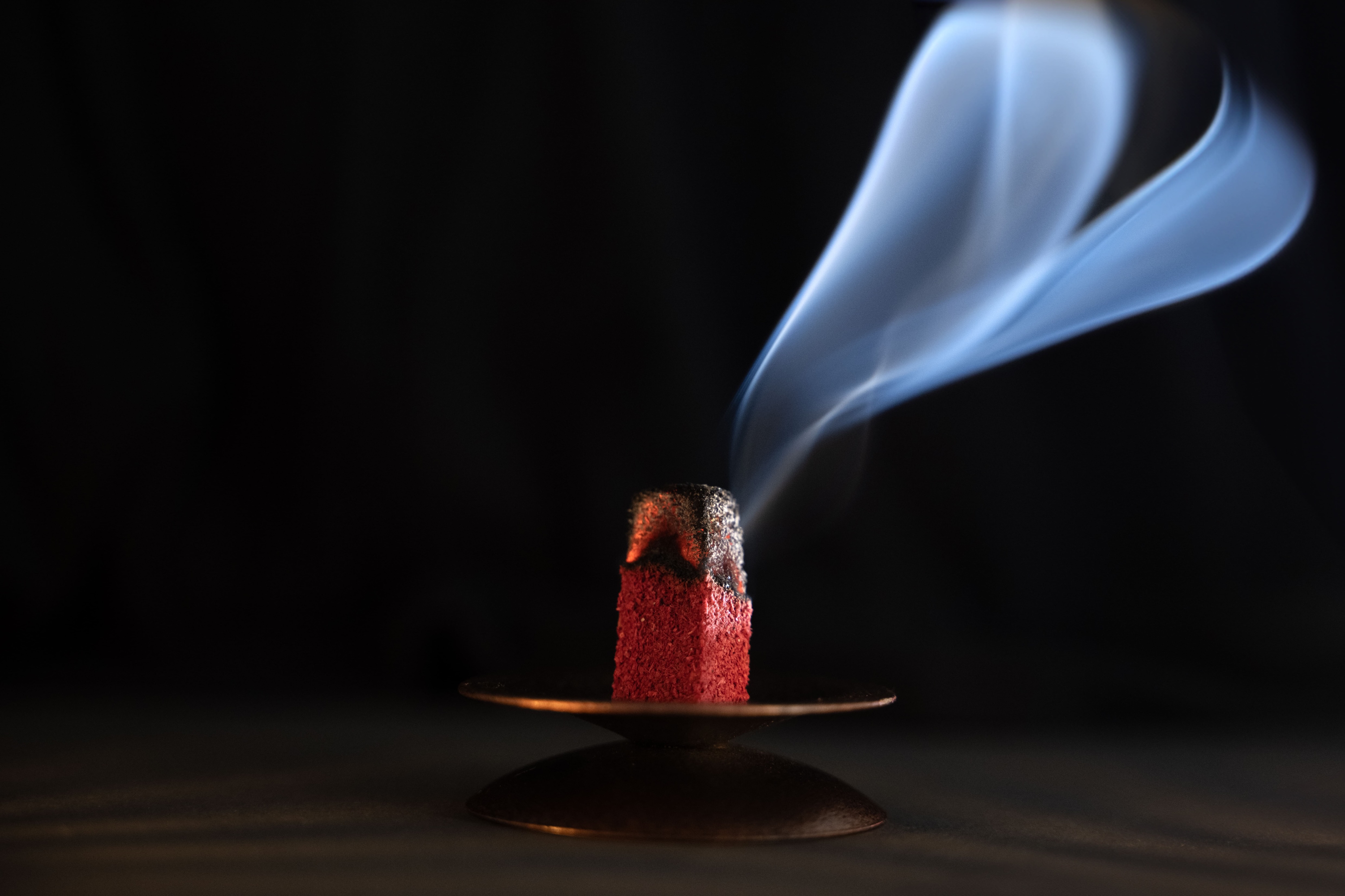 Kadzidło ma formę niewielkich kostek w charakterystycznym czerwonym kolorze, które spalają się samodzielnie – bez użycia węgielka.