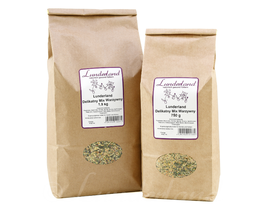 Lunderland delikatny mix warzywny 750 g to specjalistyczna mieszanka Lunderland dla psów i kotów. Naturalne składniki w optymalnych proporcjach.