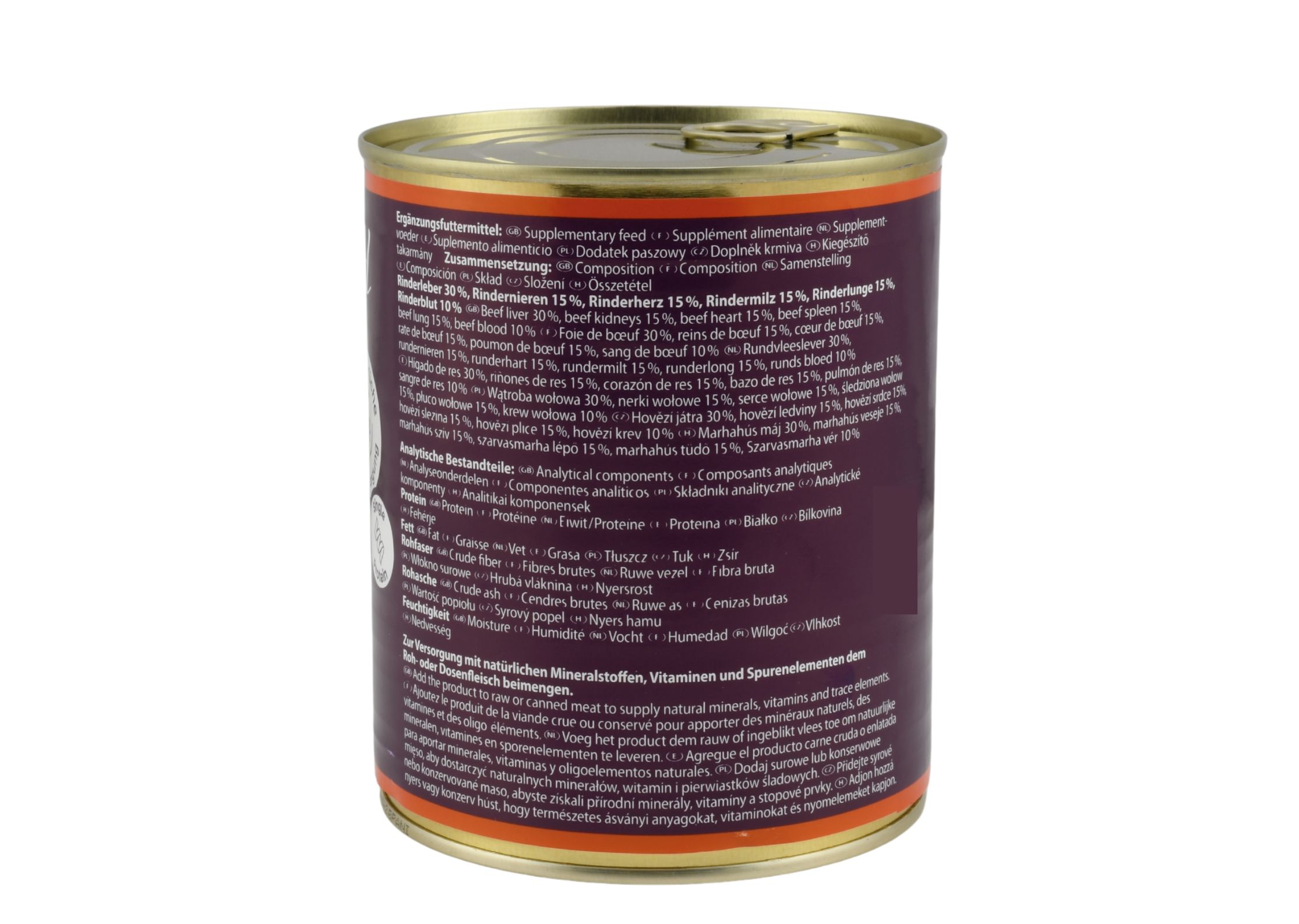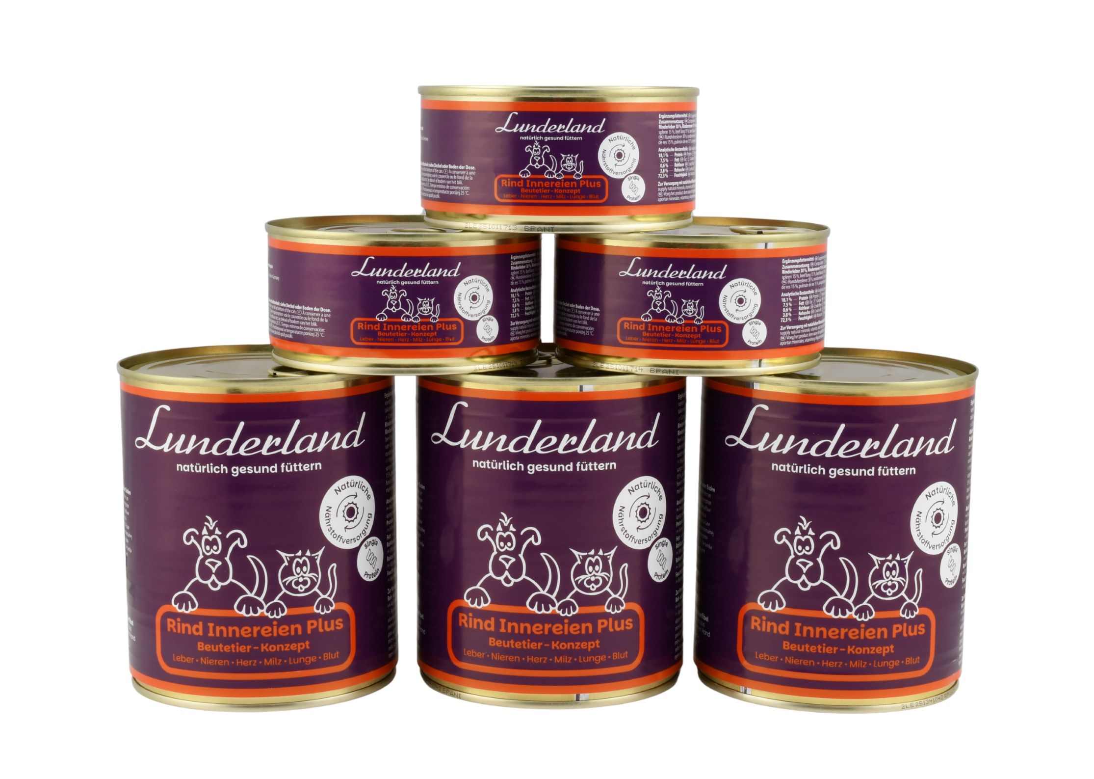 Puszka Lunderland zawiera wyłącznie wołowina w jakości spożywczej (food grade). Bez zbóż, cukru, sztucznych konserwantów, barwników czy aromatów. Mięso pochodzi z kontrolowanych hodowli w Niemczech.