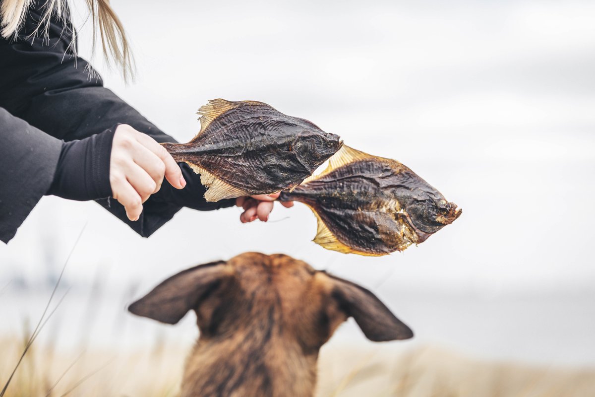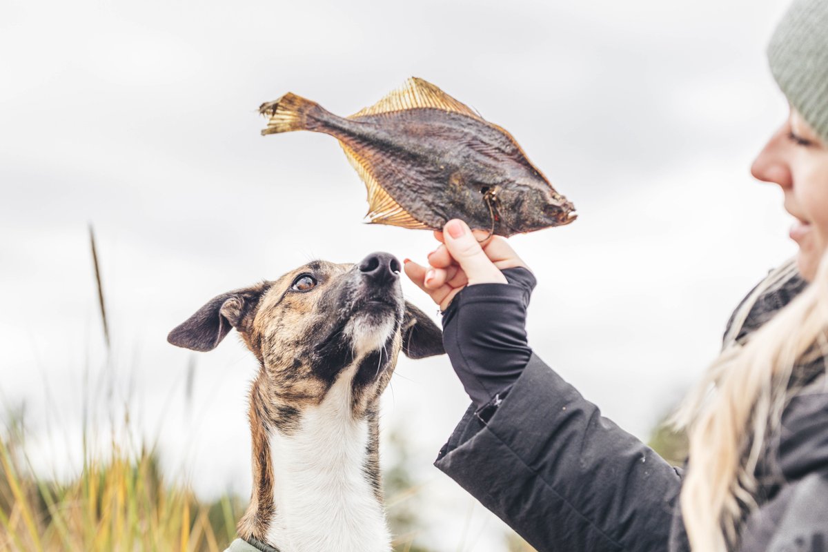 | Skład | 100% suszona flądra (cała ryba z głową) |