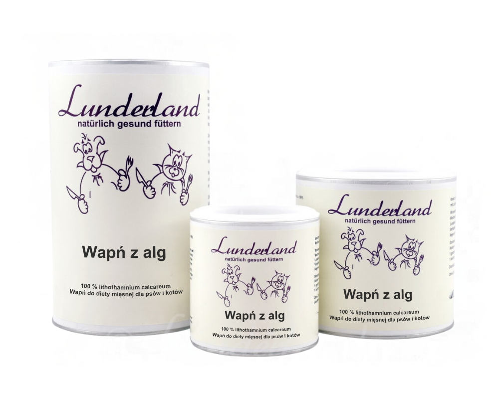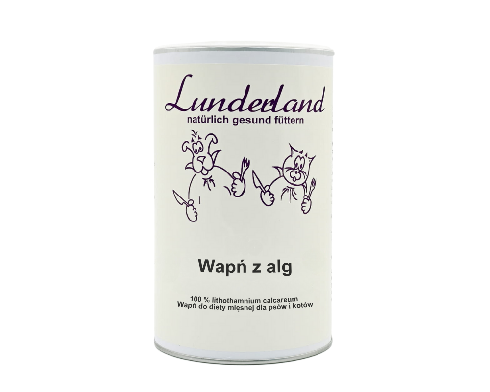 Lunderland wapń z alg 700 g to naturalny suplement diety dla psów i kotów w formie proszku. Produkt najwyższej jakości, bez sztucznych dodatków.