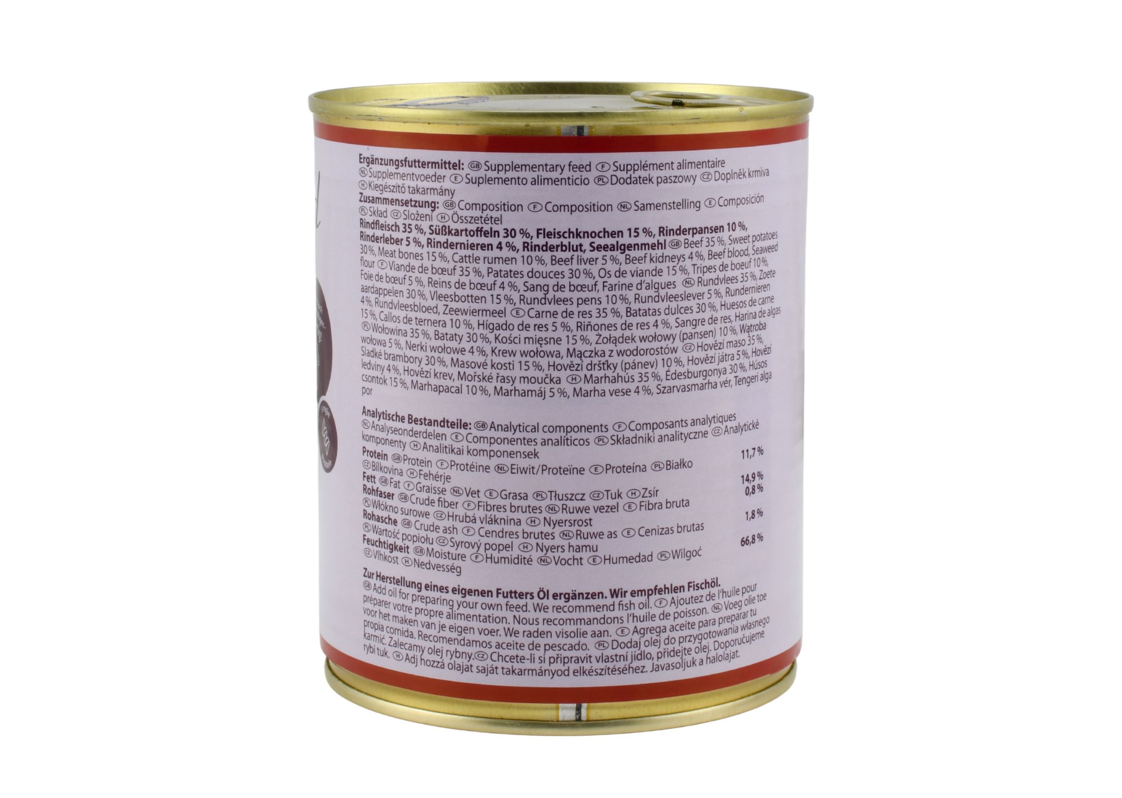 | Skład | zie znajdziesz aż 68% mięsa i podrobów wołowych oraz idealnie dobraną mieszankę warzyw i ziół wspomagających układ trawienny, odpornościowy i detoksykacyjny. Karma jest odpowiednia |