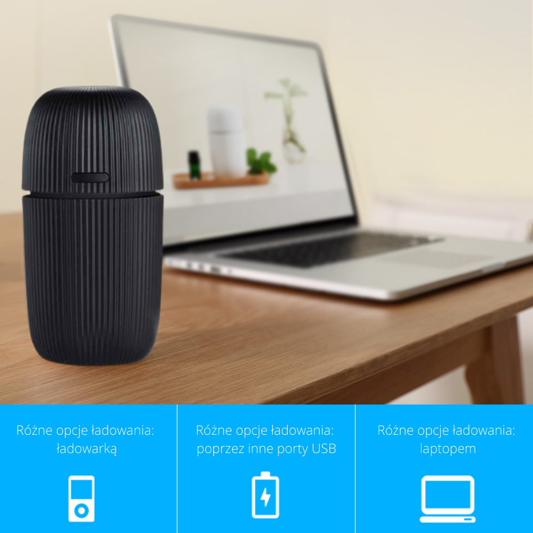 Mobilny ultradźwiękowy dyfuzor USB czarny