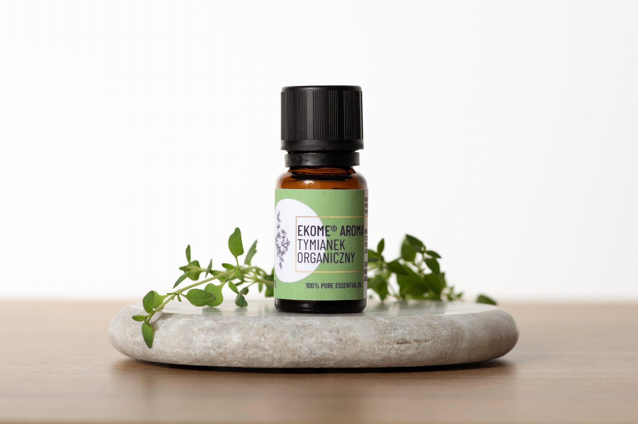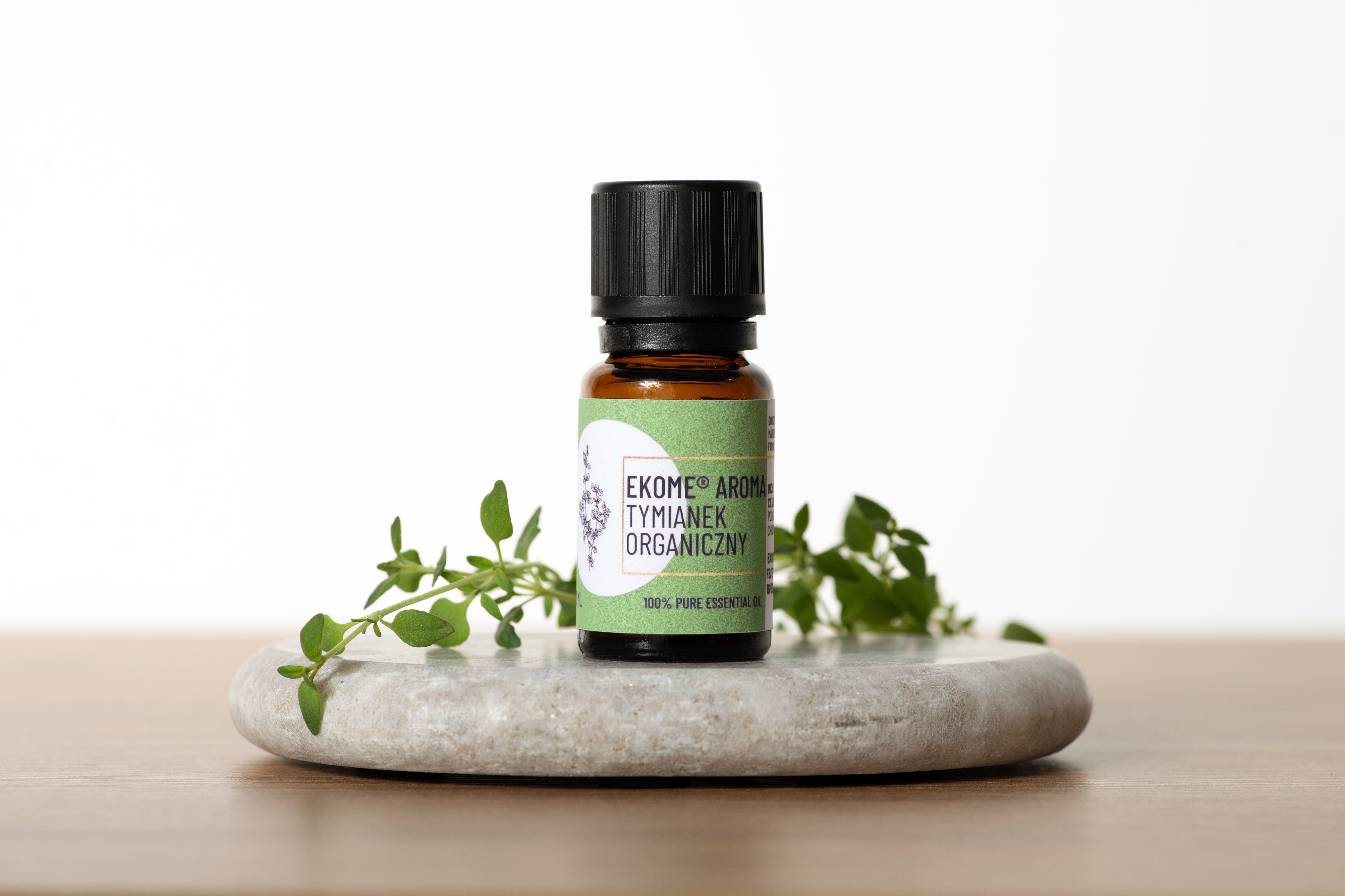 Olejek eteryczny z tymianku zawiera silne związki, które mają pozytywny wpływ na zdrowie i samopoczucie.